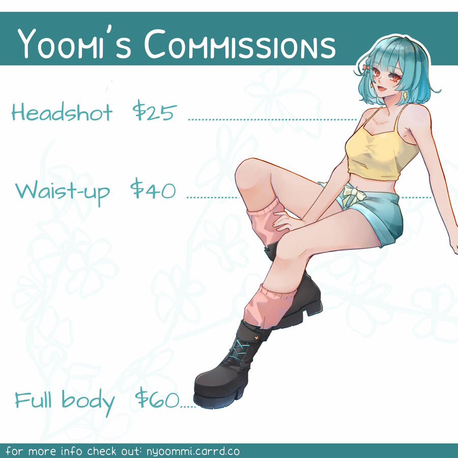 Pricing - per character♡ Please go to the samples page for sample artworks.♡ Ready to order? Place an order via Vgen. For other commission types not open, please send me an email or message on discord.Email: [email protected]